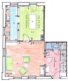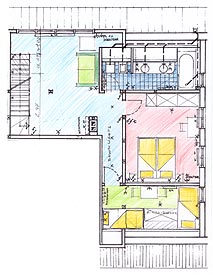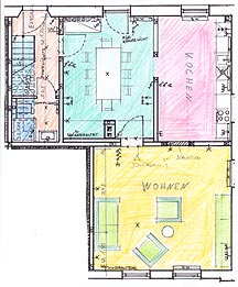 Ein Wohnraum; ein Esszimmer, eine Küche und oben 3 Schlafzimmer, 2